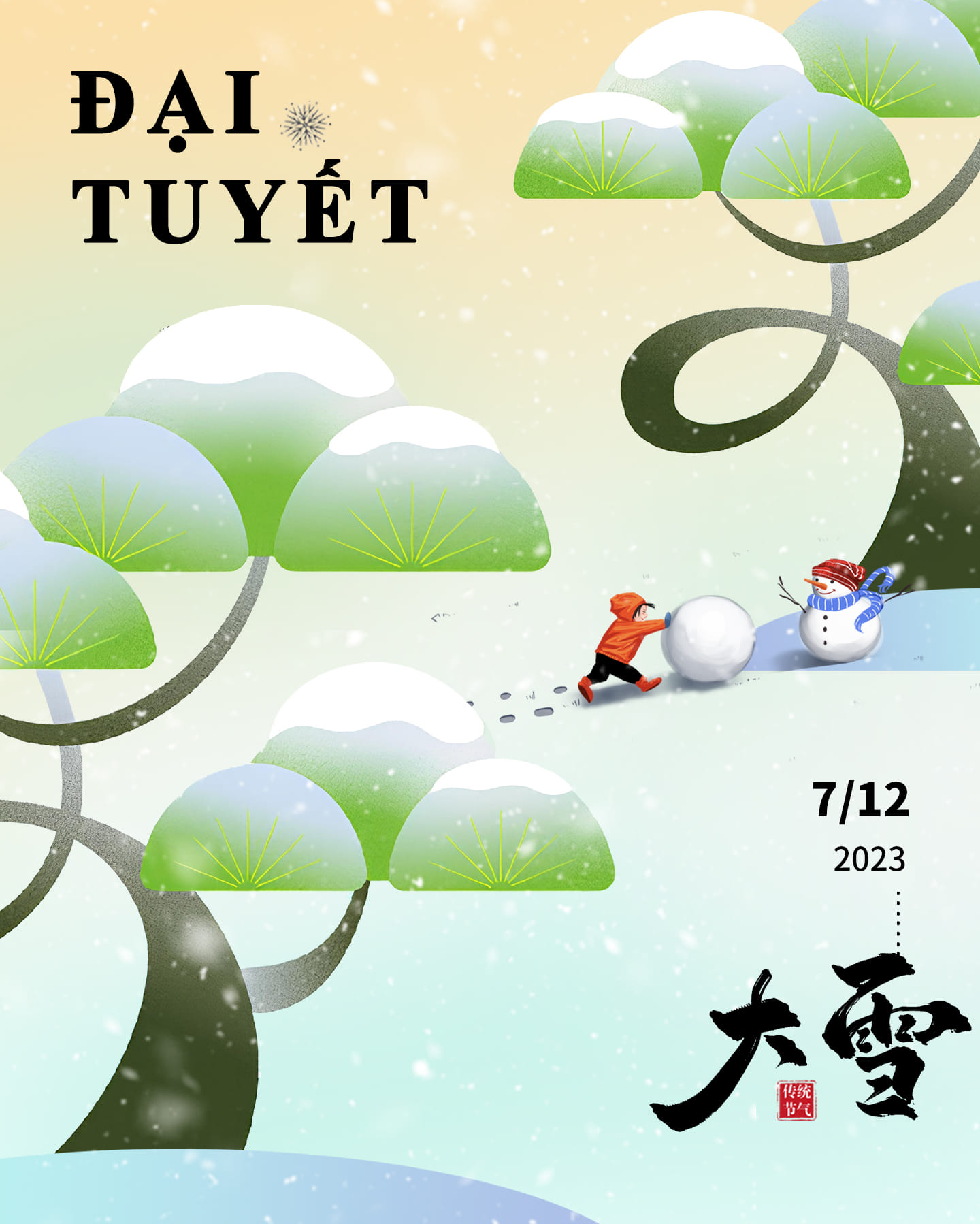 Đại Tuyết là tiết thứ 21 trong 24 tiết khí, khi tiết khí Đại Tuyết kéo đến, nhiệt độ ở hầu hết các khu vực sẽ giảm đáng kể, tuyết thường rơi dày đặc, trên phạm vi rộng nên có tên là Đại Tuyết. Đại Tuyết tương đối lạnh nên chú ý giữ ấm, ra ngoài vận động thích hợp. Mùa đông là thời điểm bồi bổ tốt nhất, lúc này người ta thường ăn cháo khoai lang, thịt ướp muối, ăn thịt dê để bồi bổ.