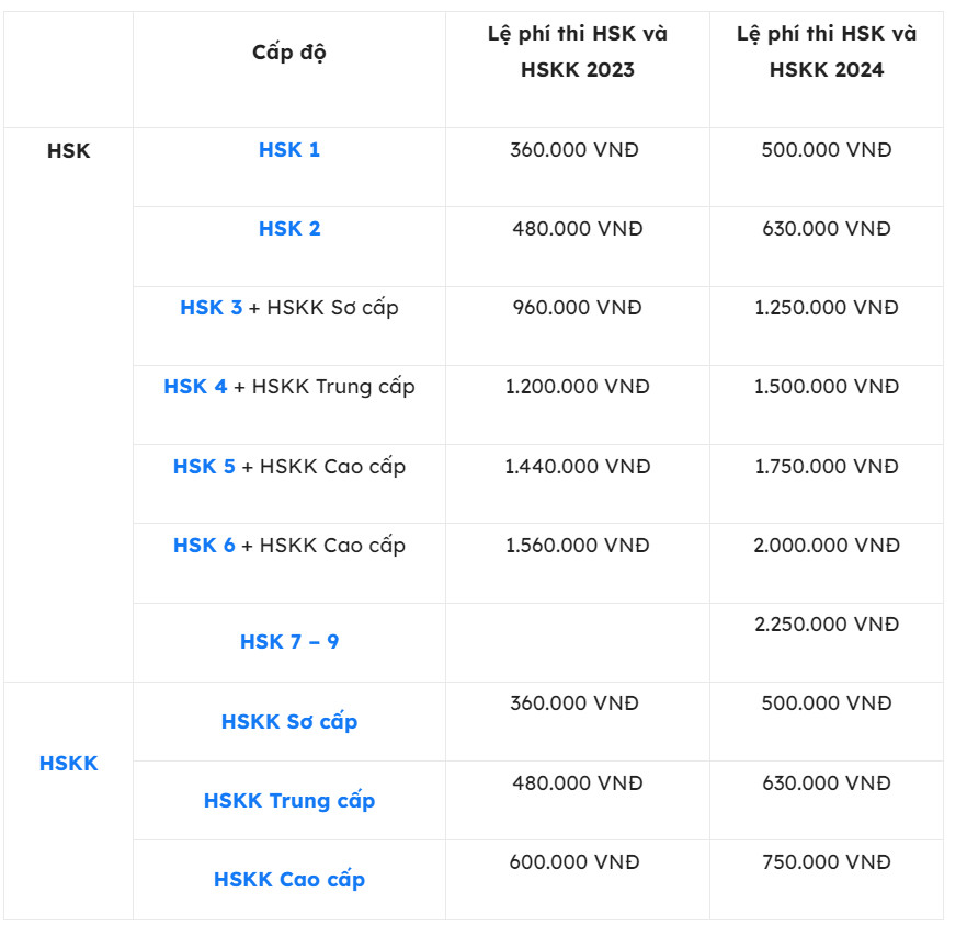 Hiện nay, lệ phí thi năm 2024 đã tăng lên khá nhiều, dưới đây là thông tin lệ phí thi HSK vào năm 2024, các bạn có thể tham khảo nhé.
