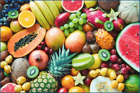 40-50 túi hoa quả xếp ngay ngắn trên lề đường...