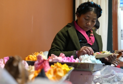 Làm tranh điêu khắc bơ đón Tết ở Tây Tạng